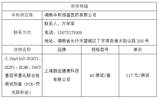 南华大学附属第二医院的肠癌多基因甲基化检测试剂于2025年9月4日结束,现将成交结果公告如下: