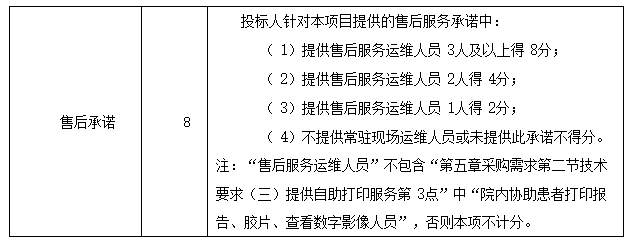 ★3.投标人应承诺中标后安排不少于3人在院内协助患者打印报告、胶片、查看数字影像,并承担其工资、社保等所有费用支出;同时,还需承诺为需要打印胶片的患者免费提供胶片。(提供承诺函)