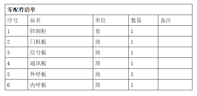 考虑后续同品牌电梯维修使用,在电梯拆除后,拆除方须将下列清单列出的零配件交还院方。