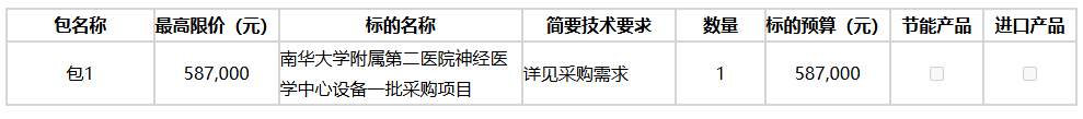 1、采购项目名称:南华大学附属第二医院神经医学中心设备一批采购项目重新立项