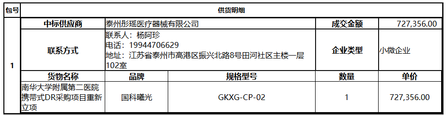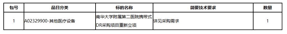 南华大学附属第二医院携带式DR采购项目重新立项重新立项中标(成交)公告