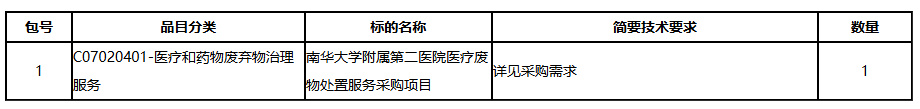 采购项目名称:南华大学附属第二医院医疗废物处置服务采购项目