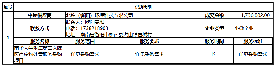 南华大学附属第二医院医疗废物处置服务采购项目中标(成交)公告
