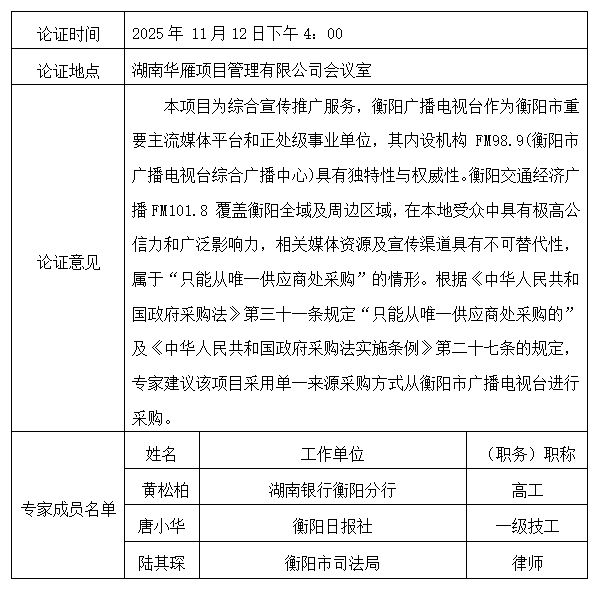 南华大学附属第二医院2025-2026年《衡阳综合广播FM98.9》综合宣传服务项目单一来源采购公示