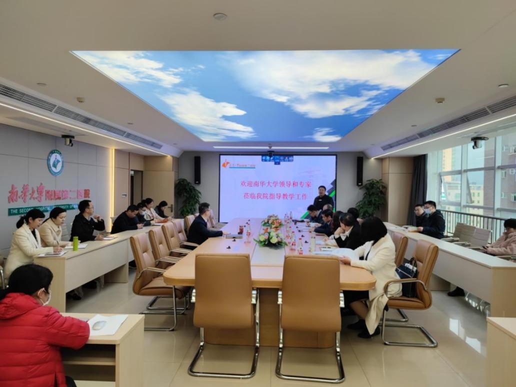 南华附二医院刘文捷院长首先对专家组一行来到我院进行本科教育教学审核评估工作现场督查表示欢迎及感谢,他指出新一轮本科教育教学审核评估是今年医院的重点工作,全院上下将高度重视、凝心聚力,按时保质的完成各项任务,并将评估的内容延续到以后的教育教学工作中去。