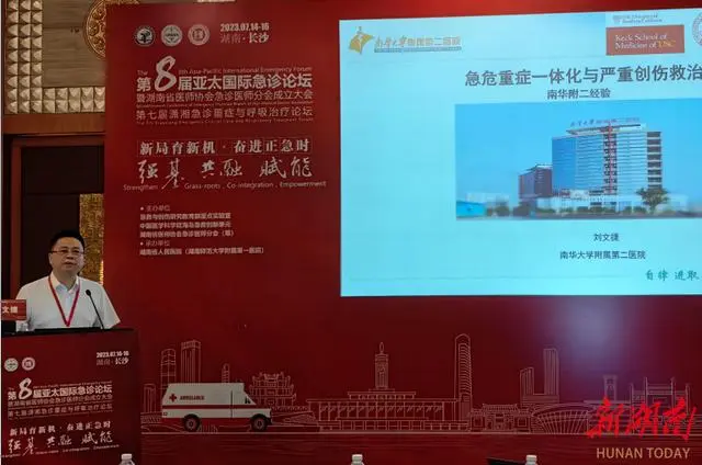 7月14日至16日,第八届亚太国际急诊论坛暨湖南省医师协会急诊医师分会成立大会在长沙召开。南华大学附属第二医院院长刘文捷当选为急诊医师分会副会长,并受邀在创伤中心建设分会场作“急危重症一体化与严重创伤救治——南华附二经验”的专题报告,介绍该院急诊急救一体化建设成效和经验做法。
