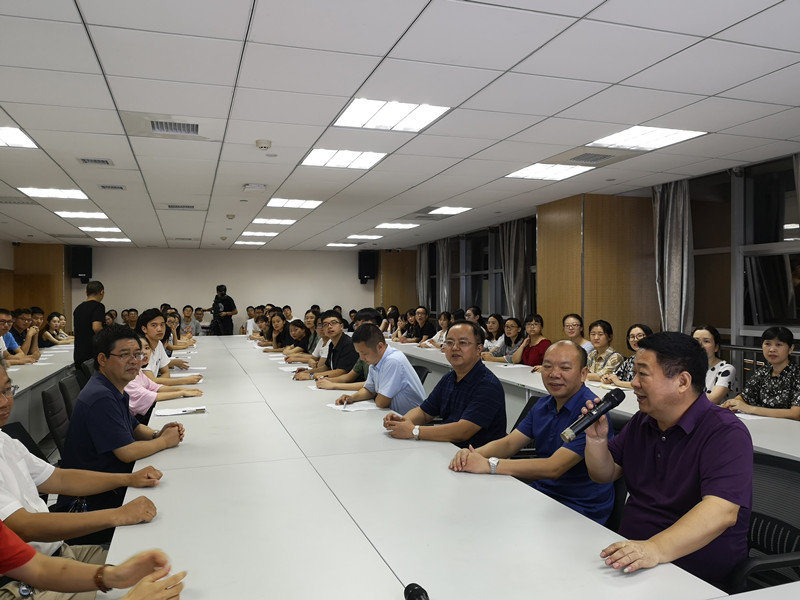 8月6日,南华大学第二临床学院举行了2019级专业学位硕士研究生新生座谈会。南华大学附属第二医院党委副书记、第二临床学院常务副院长周玉生教授,纪委书记刘安元教授,副院长李国庆教授,内科教研室主任雷长城教授,外科教研室主任谢文彪教授,导师代表袁梅副教授、王晓旭副教授,科研管理部及教学与学生工作部多名老师出席了本次座谈会。本次座谈会由科研管理部陈亚军老师主持。参加本次座谈会的还有研二、研三的学生代表以及全体2019级专业学位硕士研究生新生。同学们虽然已经学习了一段时间,但对如何提高专业知识技能、如何提升临床科研能力、如何适应身份的转变仍然有些迷茫。为此,南华大学第二临床学院特举行了此次座谈会,让领导们,老师们,同学们一起交流,共同探讨。以便同学们更好地提升自己,练好基本功,培养临床思维,做一名优秀的临床医生。在会上,各位领导老师尽心地为同学们答疑解惑,周院长表达了对同学们的鼓励并寄语厚望,刘书记结合自己多年研究生教育管理经验,对同学们顺利完成学位论文工作提出宝贵建议。李院长教导同学们时间是挤出来的,学医就像走隧道,往前走才有光。谢教授教导同学们“很珍贵,要珍惜;很辛苦,要努力”,年轻是资本,更要努力泡临床。雷教授告诫同学们要踏踏实实做人,认认真真做事,端端正正做学问。王老师告诉同学们确定了目标就要不畏惧失败,戒骄戒躁。袁老师结合自己的学习经历,对同学们的文献查阅与论文写作进行指导。2017级研究生代表魏大飞也结合自己的亲身经历向同学们讲述了怎样提高自己的临床技能,以及临床科研对研究生的重要性。各位老师对同学们倾囊相授,同学们也踊跃提问,不断发言,内容涉及课题的来源与推进,科研与住培的时间规划,论文与临床工作的协调等方面。