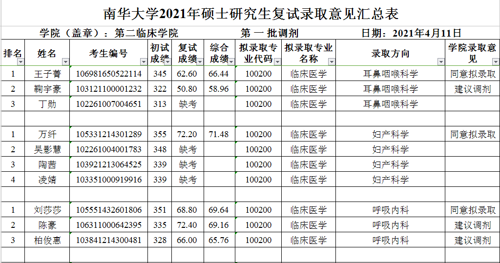 上一篇:南华大学第二临床学院2021年硕士研究生拟录取名单公示(第一批) 下一篇:南华大学第二临床学院 2021年临床医学硕士研究生招生第三批调剂复试通知