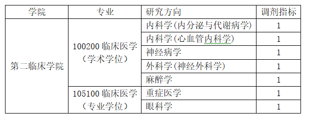 2、鉴于我校临床医学调剂复试时间统一,考生本次只能报考一个临床学院一个方向的调剂志愿;