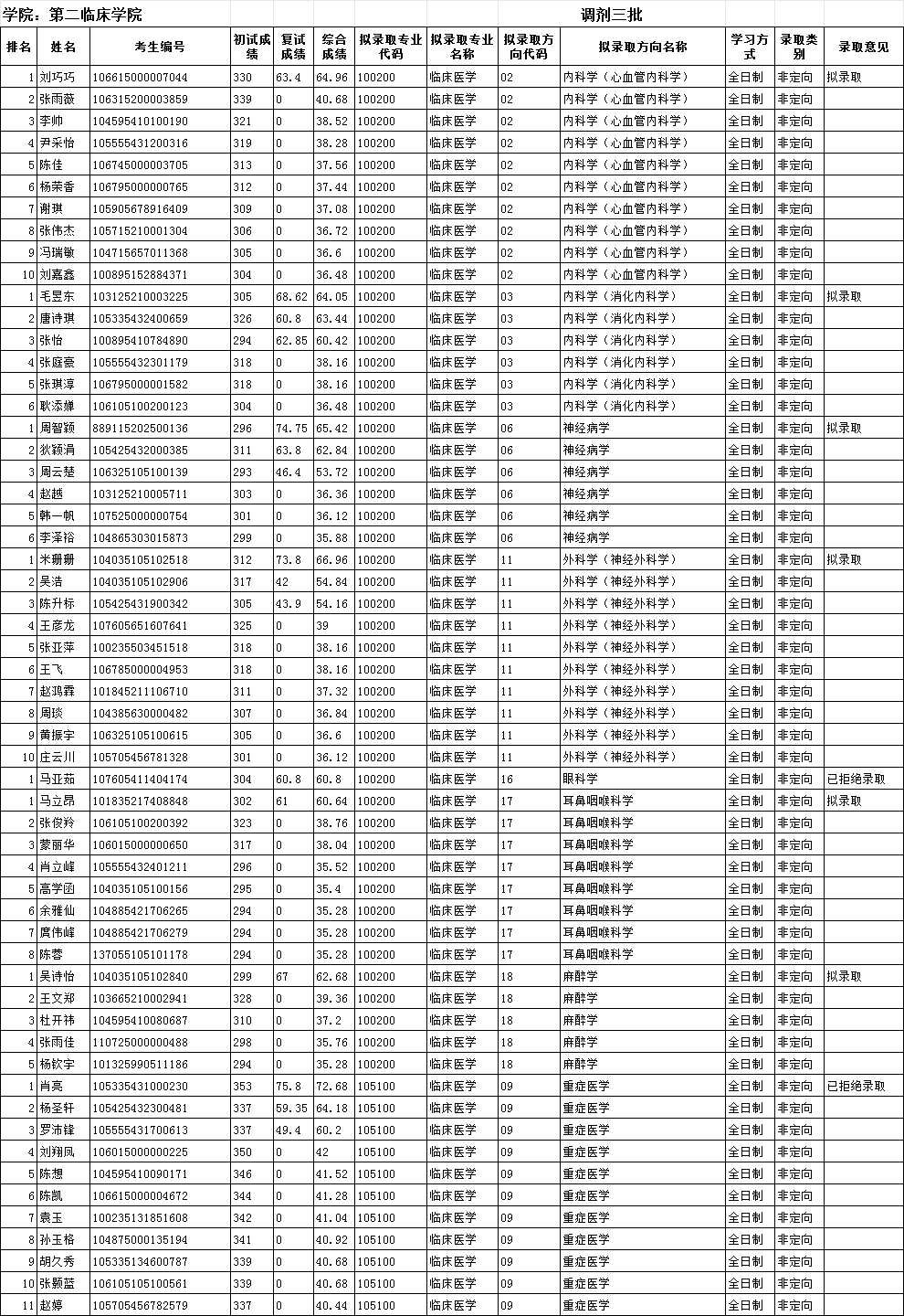 南华大学第二临床学院2025年硕士研究生复试录取结果公示(调剂三批)