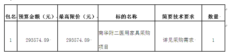 南华大学附属第二医院医用家具采购项目竞争性谈判公告
