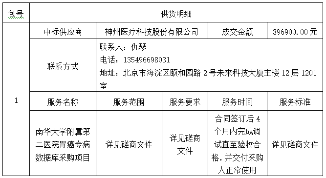 南华大学附属第二医院胃癌专病数据库采购项目中标(成交)公告