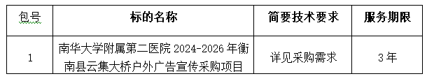 采购项目名称:南华大学附属第二医院2024-2026年衡南县云集大桥户外广告宣传采购项目