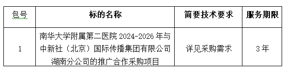 南华大学附属第二医院2024-2026年与中新社(北京)国际传播集团有限公司湖南分公司的推广合作采购项目中标(成交)公告