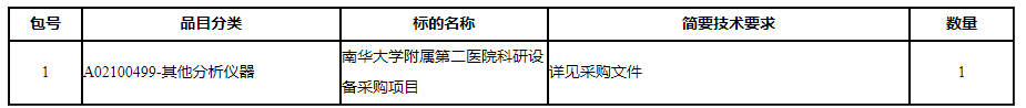 采购项目名称:南华大学附属第二医院科研设备采购项目