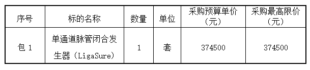 南华大学附属第二医院单通道脉管闭合发生器(LigaSure)采购项目招标公告