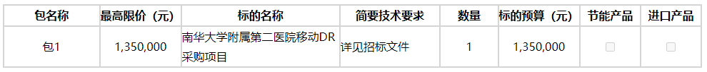 南华大学附属第二医院移动DR采购项目公开招标公告