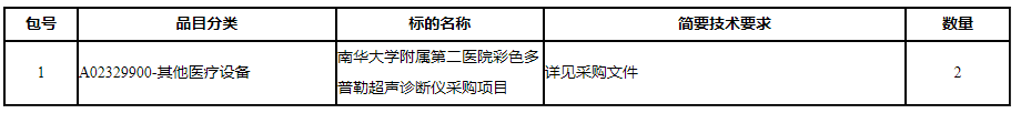 采购项目名称:南华大学附属第二医院彩色多普勒超声诊断仪采购项目