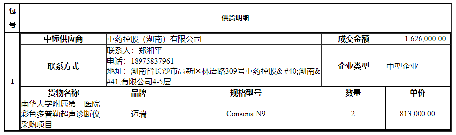 南华大学附属第二医院的南华大学附属第二医院彩色多普勒超声诊断仪采购项目公开招标采购项目于2024年07月30日结束,现将中标(成交)结果公告如下: