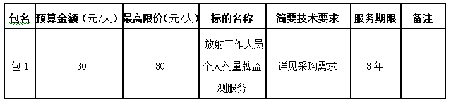 服务范围:放射工作人员个人剂量牌监测服务,具体详见采购需求。