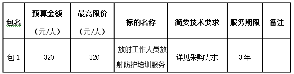 服务范围:放射工作人员放射防护培训服务,具体详见采购需求。
