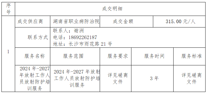 南华大学附属第二医院2024年-2027年放射工作人员放射防护培训服务项目(第二次)竞争性磋商成交结果公告