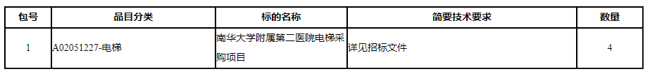 采购项目名称:南华大学附属第二医院电梯采购项目