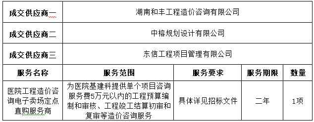 南华大学附属第二医院工程造价咨询电子卖场定点直购服务商项目成交公告