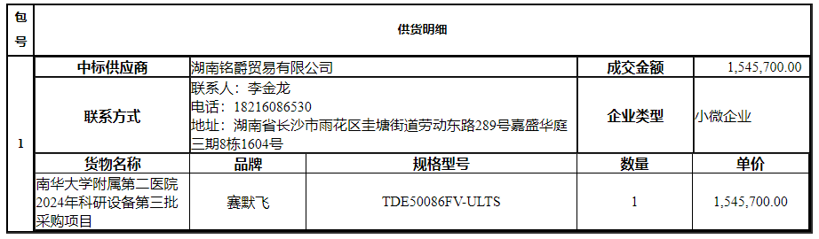 南华大学附属第二医院2024年科研设备第三批采购项目中标(成交)公告