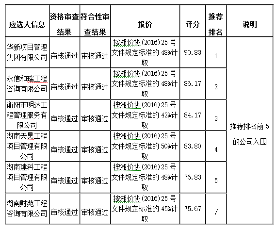 遴选控制价:按湘价协(2016)25号文件规定标准的50%计取,报价高于控制价的,作废标处理。