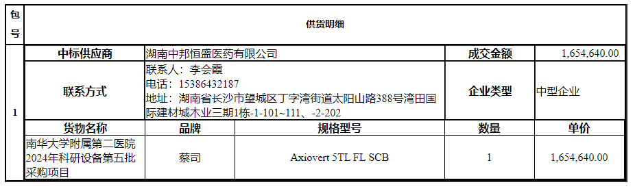 南华大学附属第二医院2024年科研设备第五批采购项目中标(成交)公告