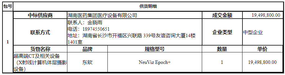 南华大学附属第二医院CT第一批采购项目中标(成交)公告
