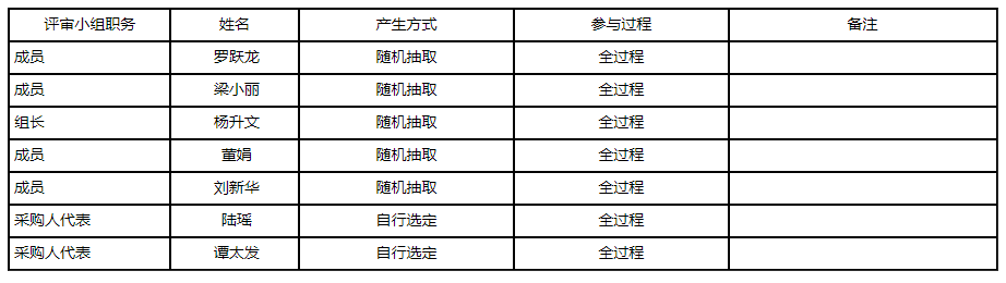 注:产生方式注明是随机抽取或自行选定;参与过程注明是确定供应商、谈判或全过程。