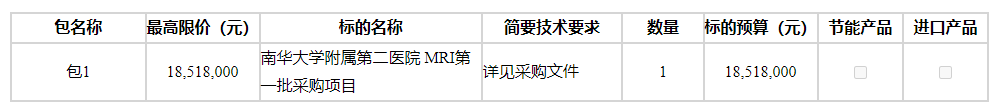 南华大学附属第二医院 的 MRI第一批采购项目重新立项 进行公开招标采购,现邀请合格投标人参加投标。