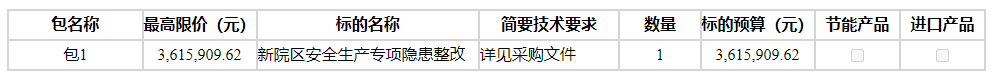 4、采购项目预算:3,615,909.62元