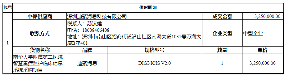 南华大学附属第二医院智慧重症监护临床信息系统采购项目中标(成交)公告
