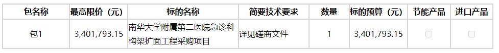 1、采购项目名称:南华大学附属第二医院急诊科构架扩面工程采购项目