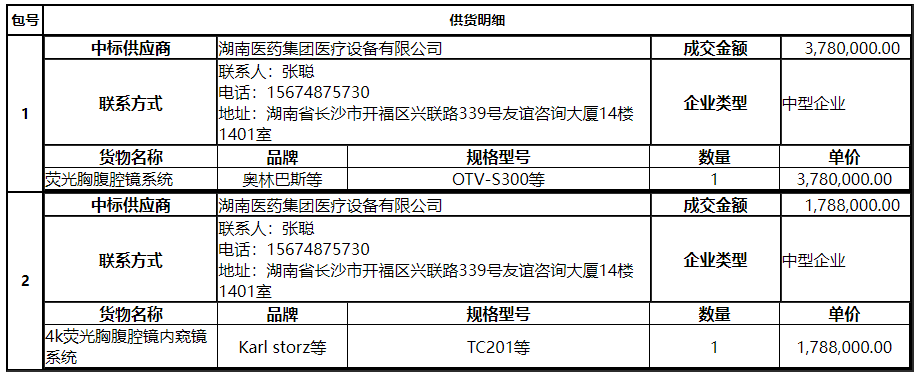 南华大学附属第二医院内窥镜系统第一批采购项目中标(成交)公告
