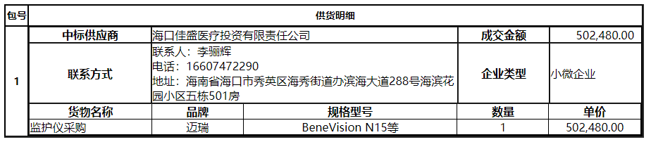 南华大学附属第二医院监护仪采购项目重新立项中标(成交)公告