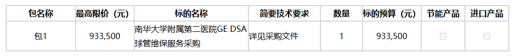 南华大学附属第二医院GE DSA球管维保服务采购项目公开招标公告