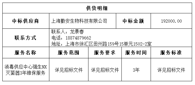 消毒供应中心强生NX灭菌器3年维保服务采购项目中标公告