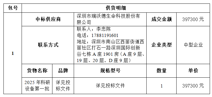 南华大学附属第二医院的南华大学附属第二医院2025年科研设备第一批采购项目(二次)公开招标采购于2025年07月29日结束,现将中标(成交)结果公告如下: