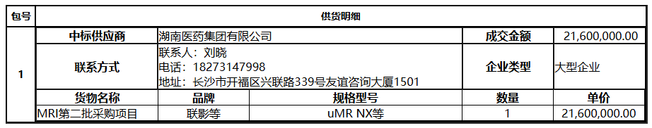 南华大学附属第二医院MRI第二批采购项目重新立项项目中标(成交)公告