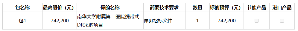 南华大学附属第二医院携带式DR采购项目公开招标公告
