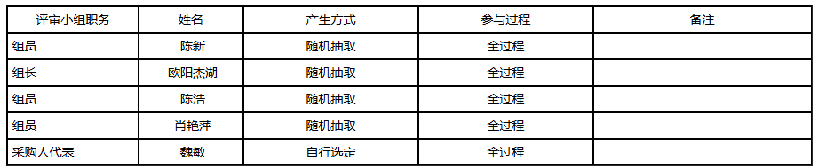注:产生方式注明是随机抽取或自行选定;参与过程注明是确定供应商、谈判或全过程。
