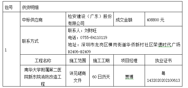 南华大学附属第二医院新东院消防改造工程中标(成交)公告
