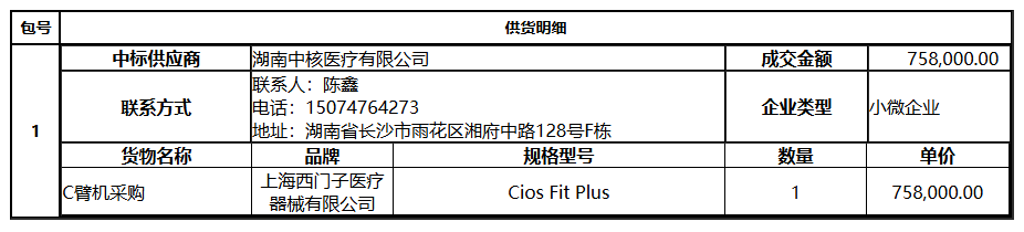 南华大学附属第二医院 C 臂机采购项目中标(成交)公告