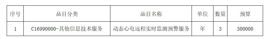 采购人的动态心电远程实时监测预警服务拟进行单一来源采购,现将有关事项公告如下:
