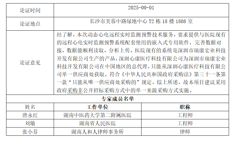 南华大学附属第二医院动态心电远程实时监测预警服务单一来源采购公示