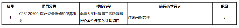 南华大学附属第二医院眼科一批设备维保服务采购项目中标(成交)公告